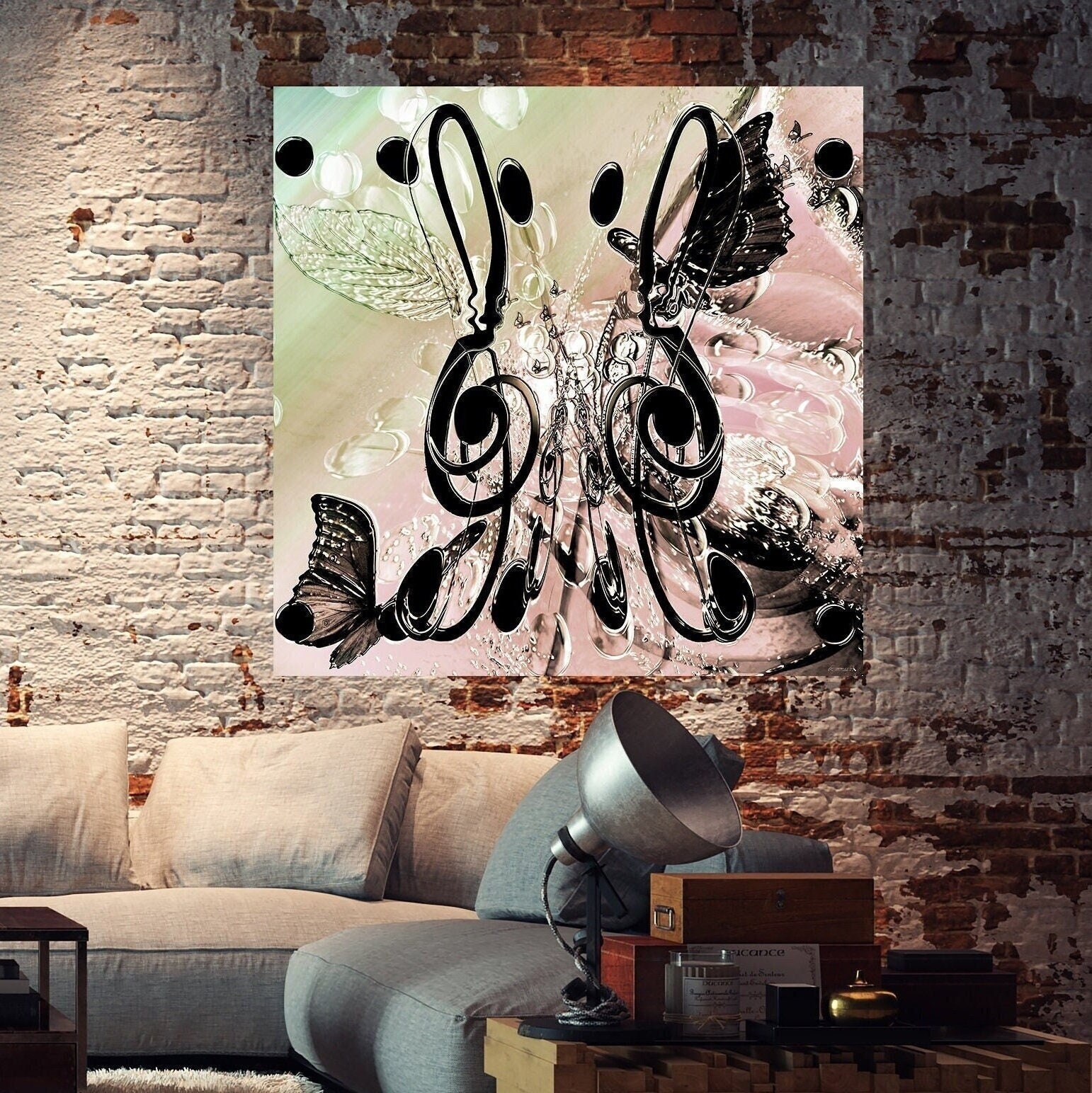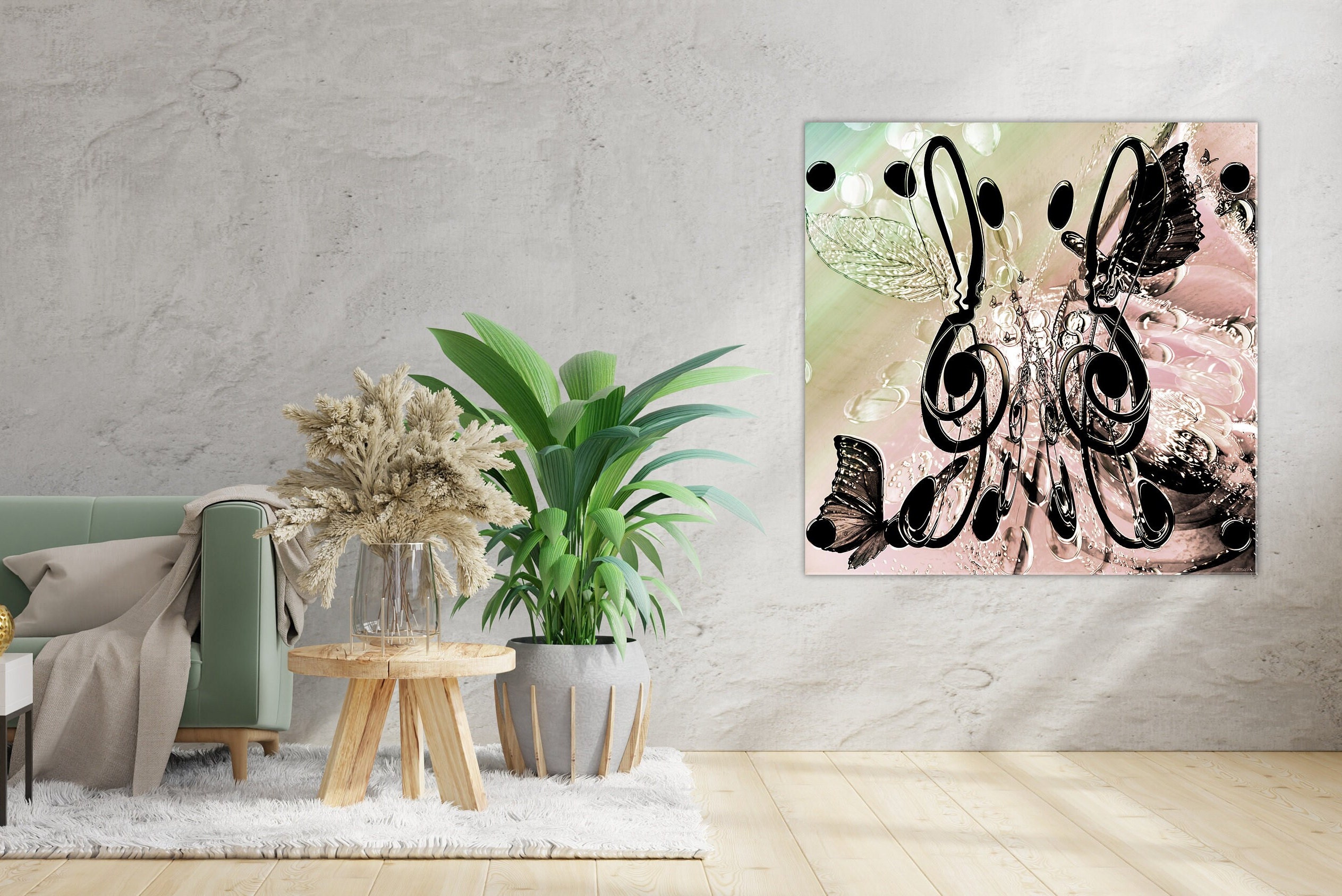 LIMITED EDITION | Plexiglas or brushed aluminium painting | Pink and grey square abstract painting | Musical notes | Wall art | Melody.
