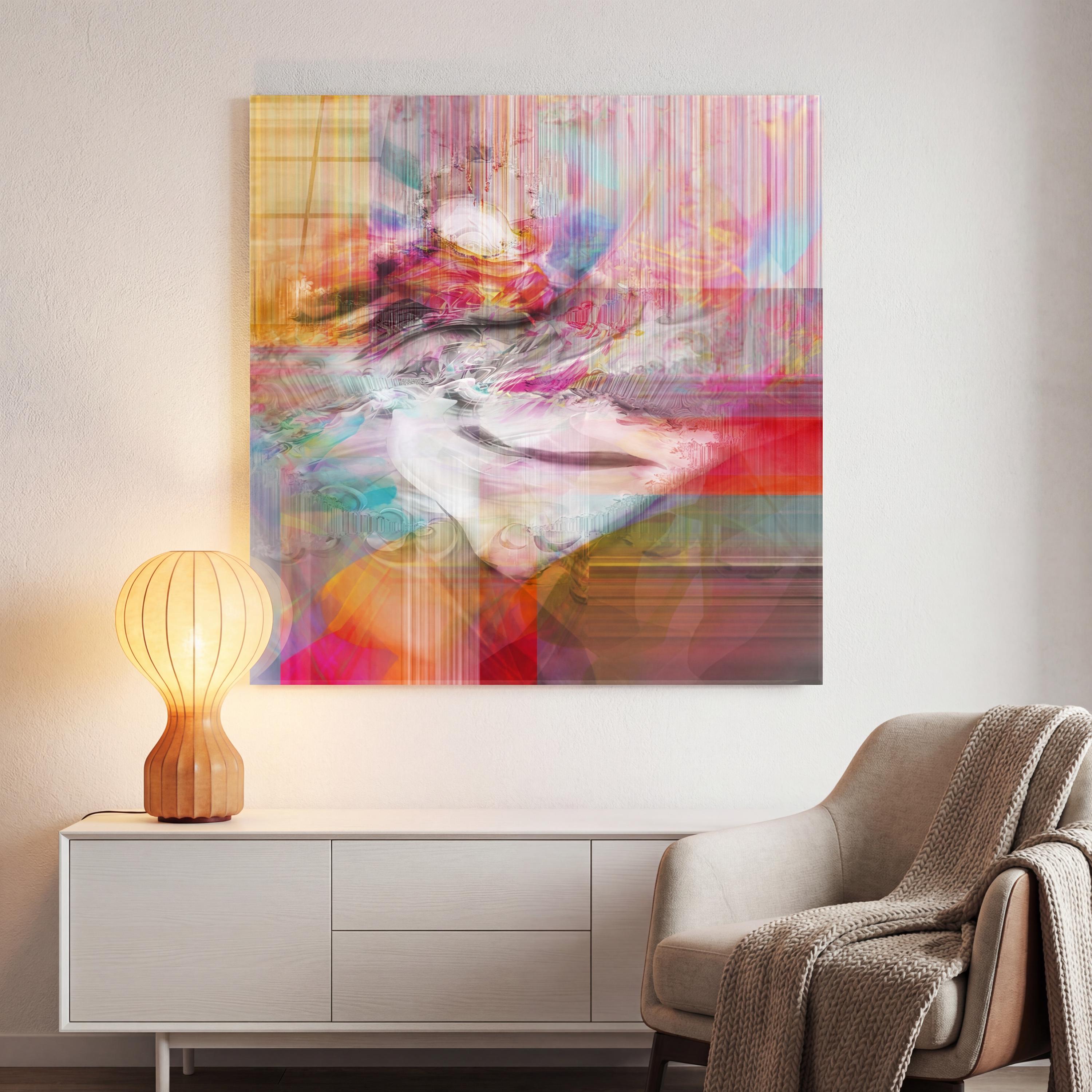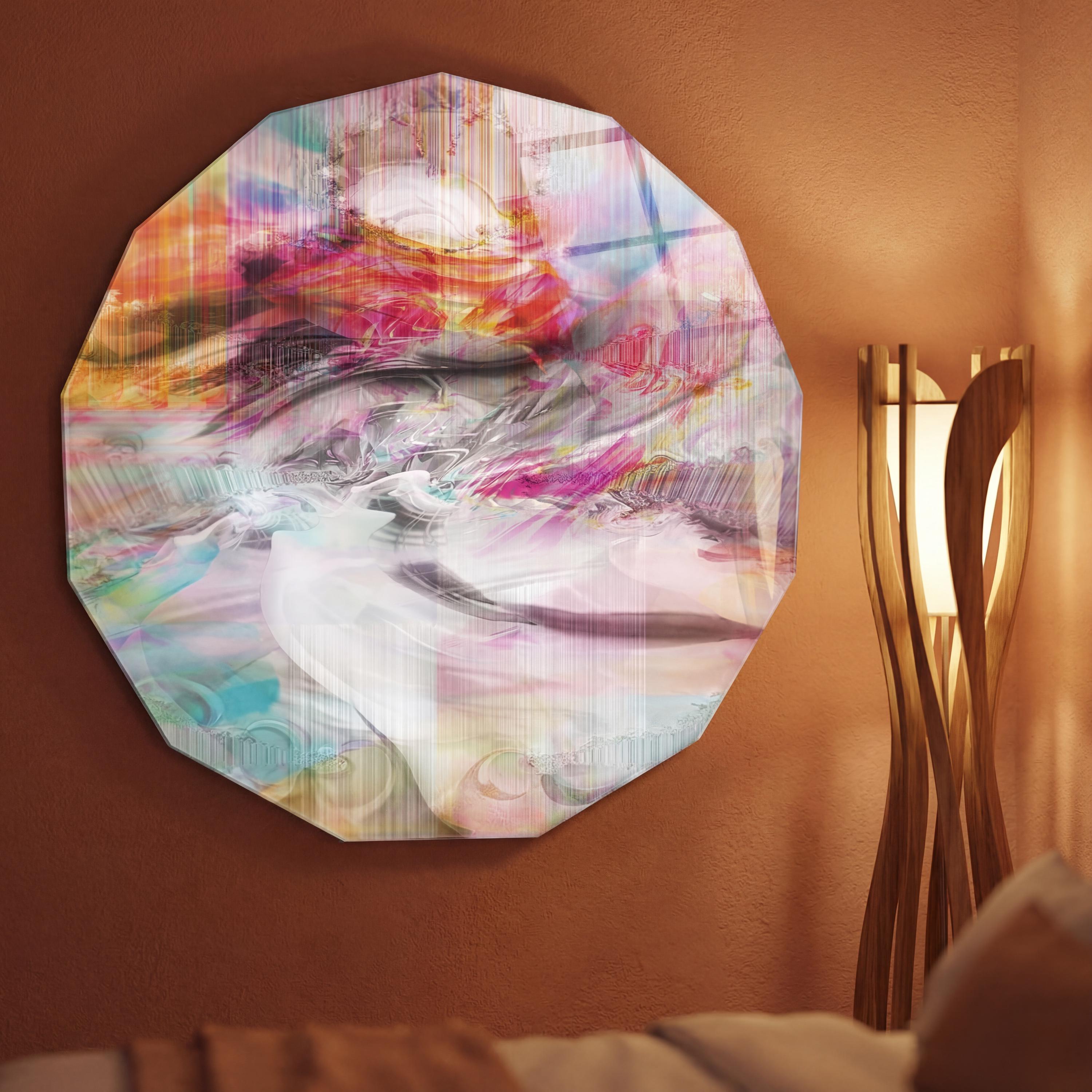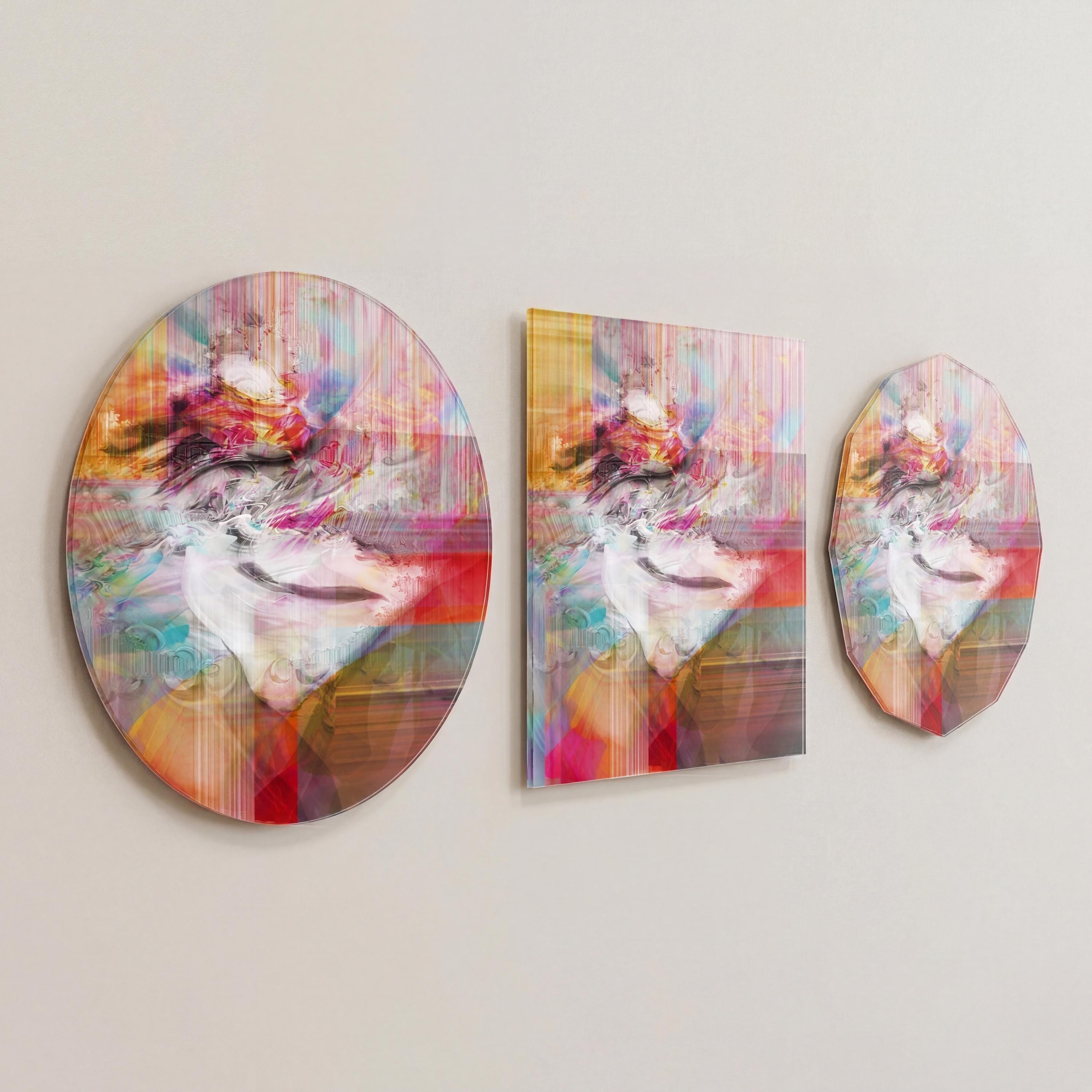 A contemporary work with pinkish hues, Éclat d’Âme reveals an abstract female portrait, between light and transparency.