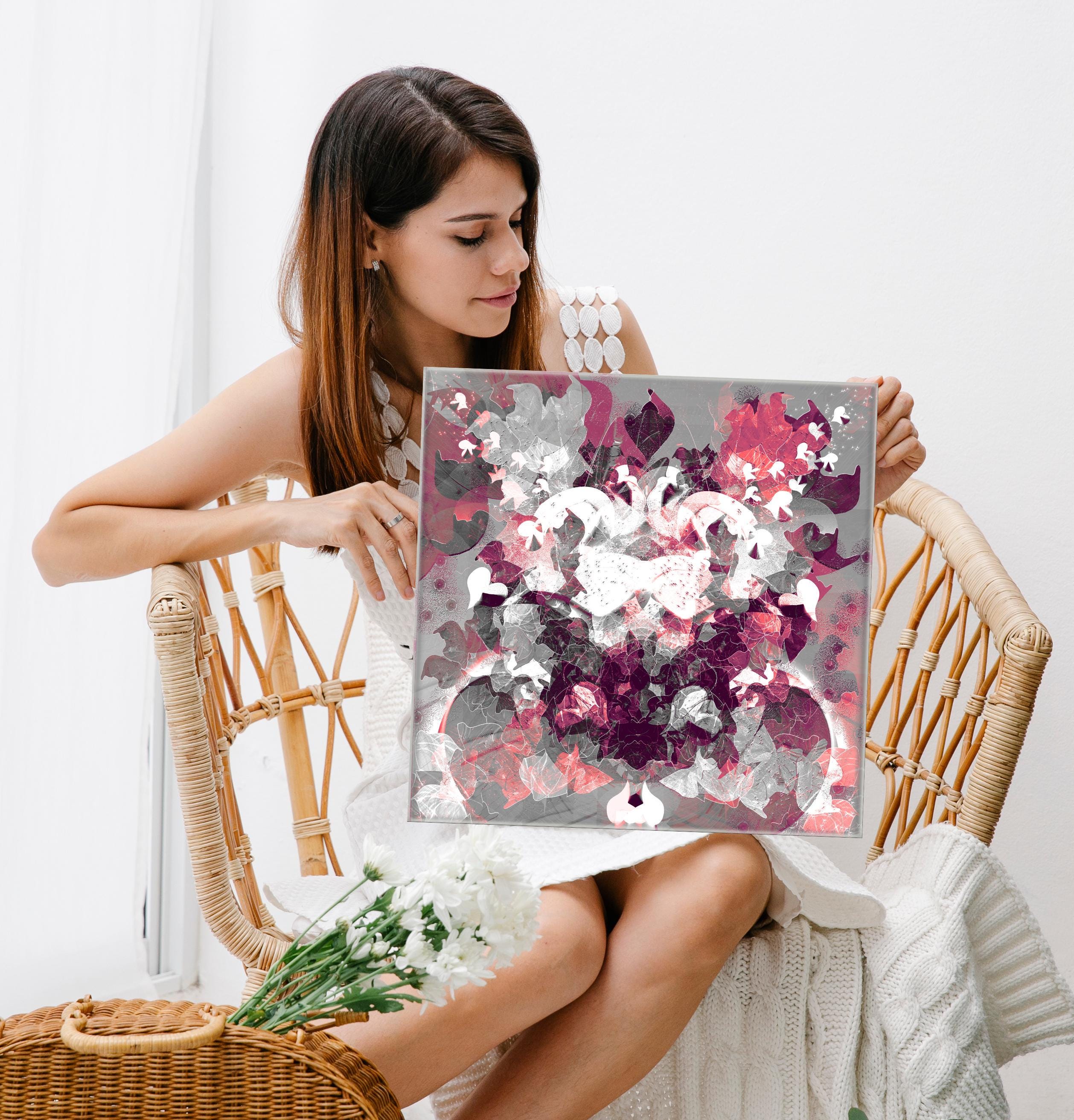 Abstract Square Painting in Pink and Grey - "The Mystery of the Joker" - Print on Plexiglas or Aluminium - Limited Edition - Contemporary Art