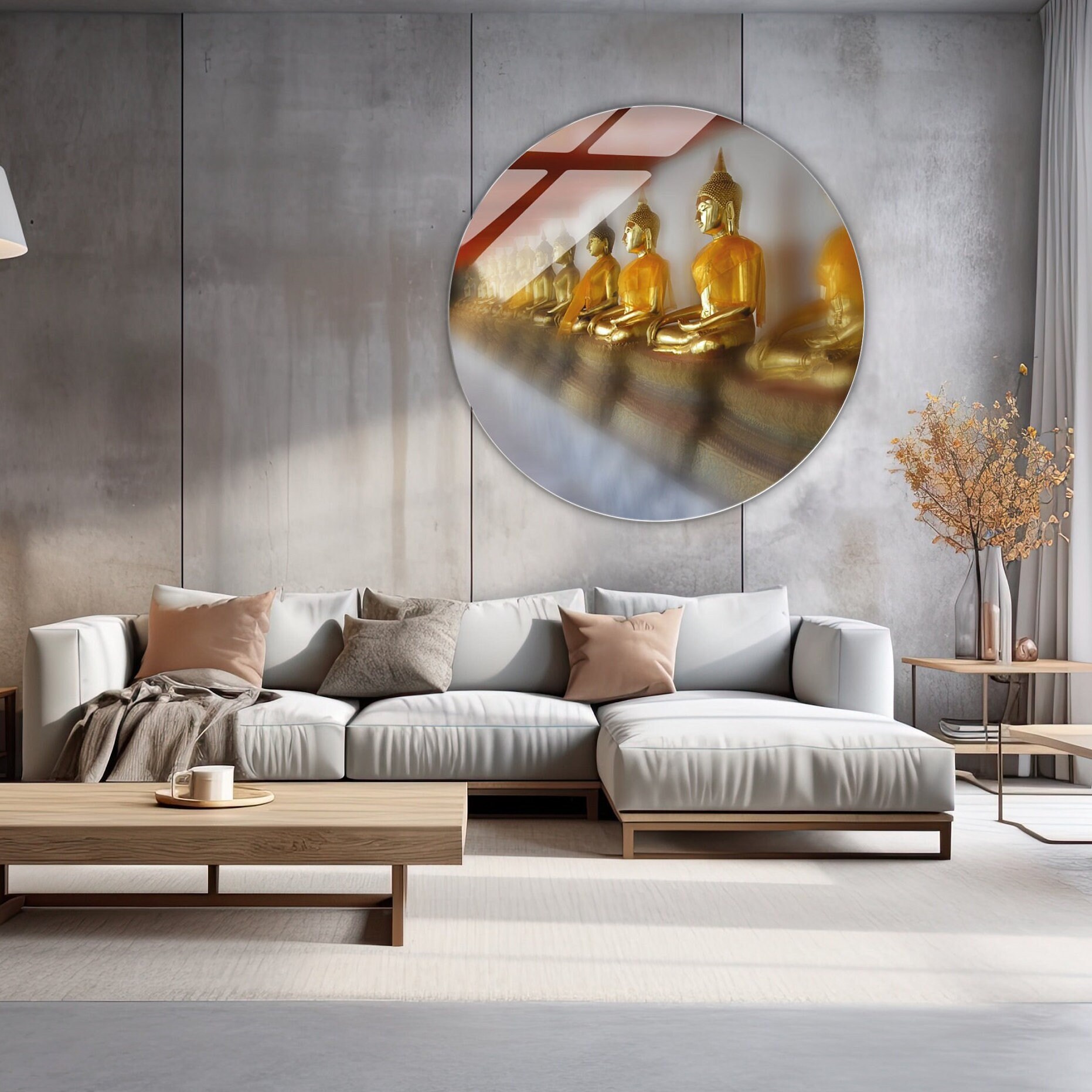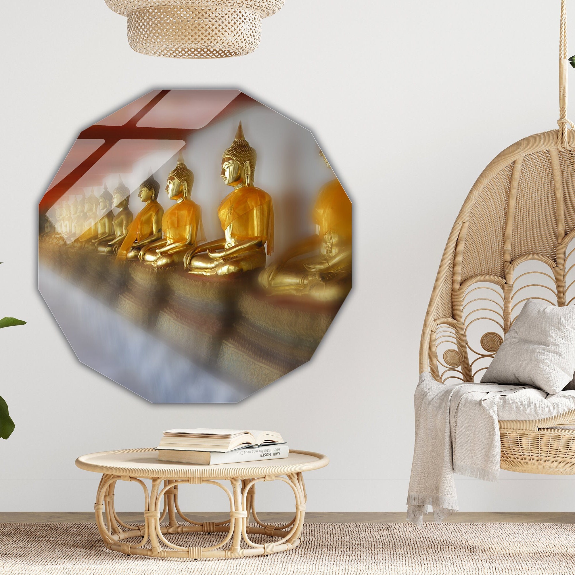 Available in square, round, and polygonal shapes, it suits all interior styles. Each plexiglass print is carefully crafted to guarantee vibrant colors and exceptional durability. Transform your décor with this unique piece that inspires meditation and harmony.