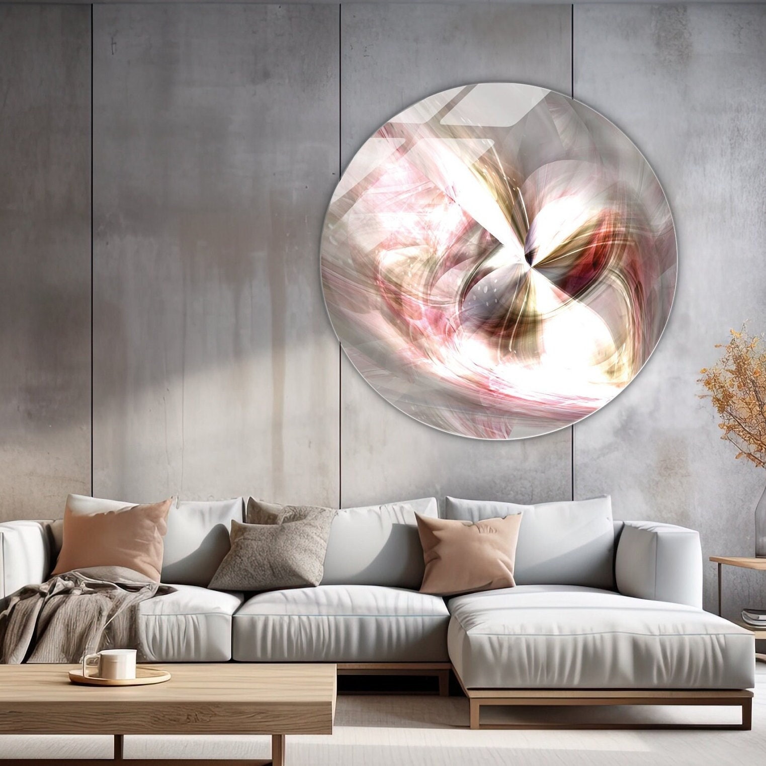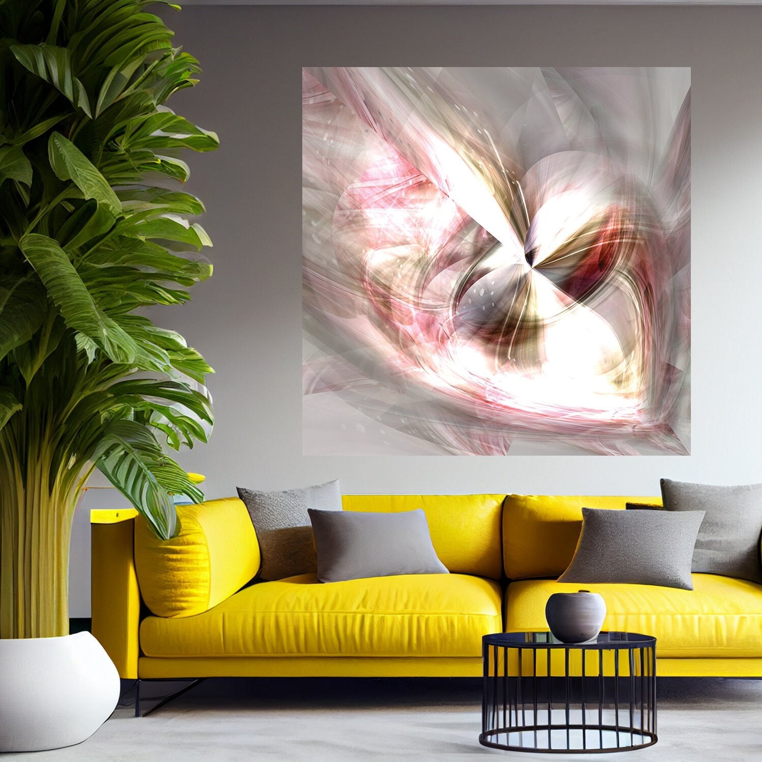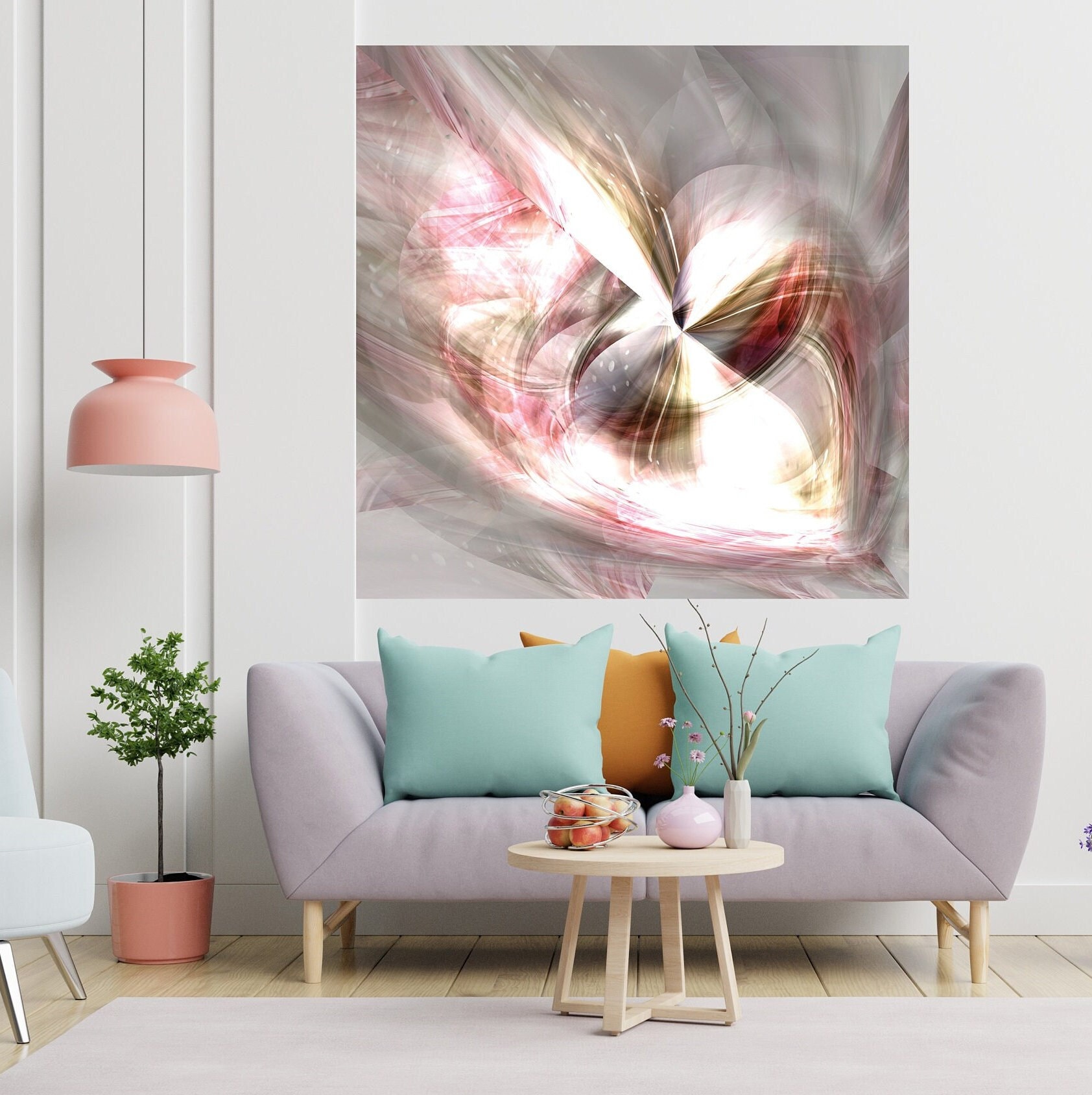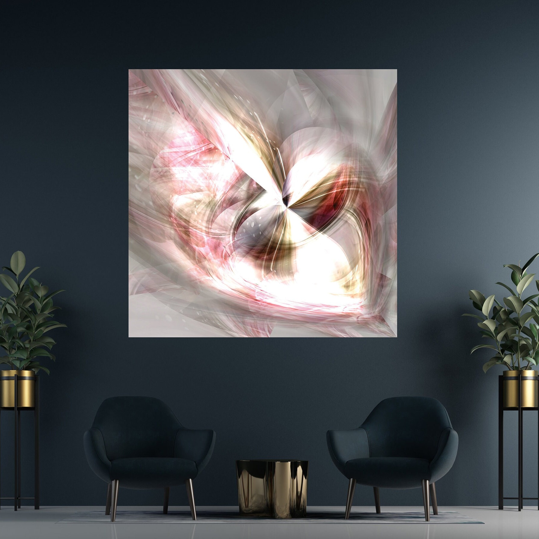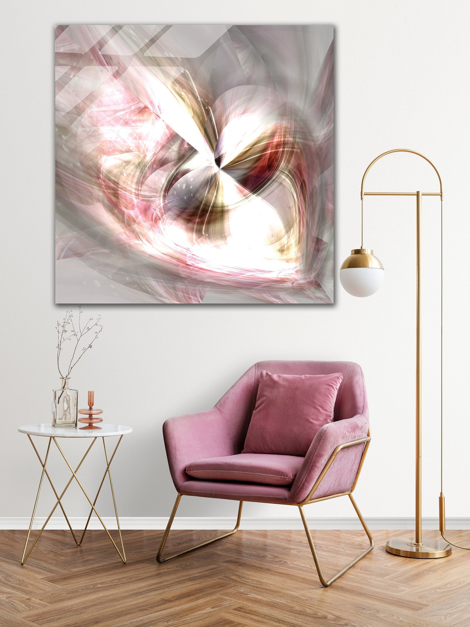 LIMITED EDITION | Pink and grey abstract painting | Brushed aluminium/plexiglass | wallArt | At the heart of love, for a romantic universe.
