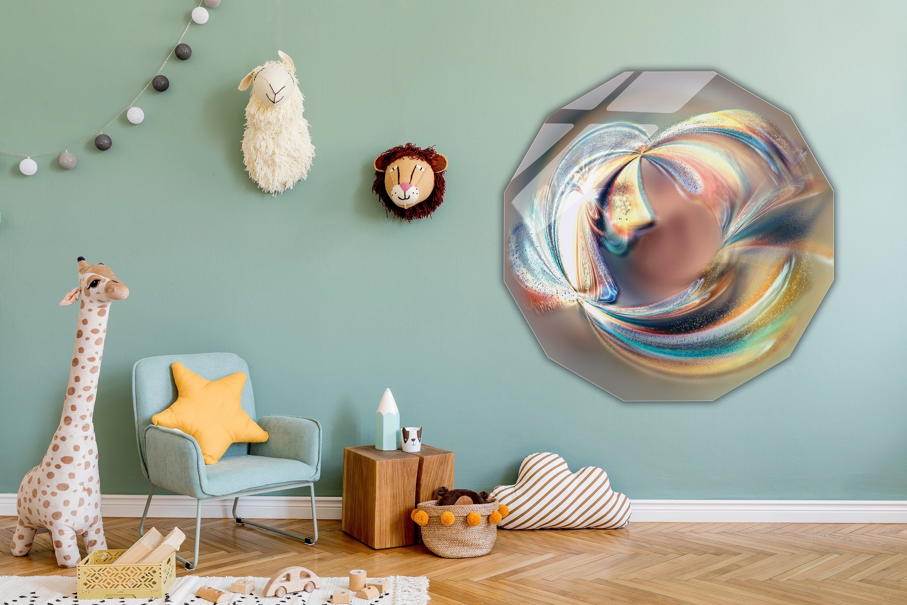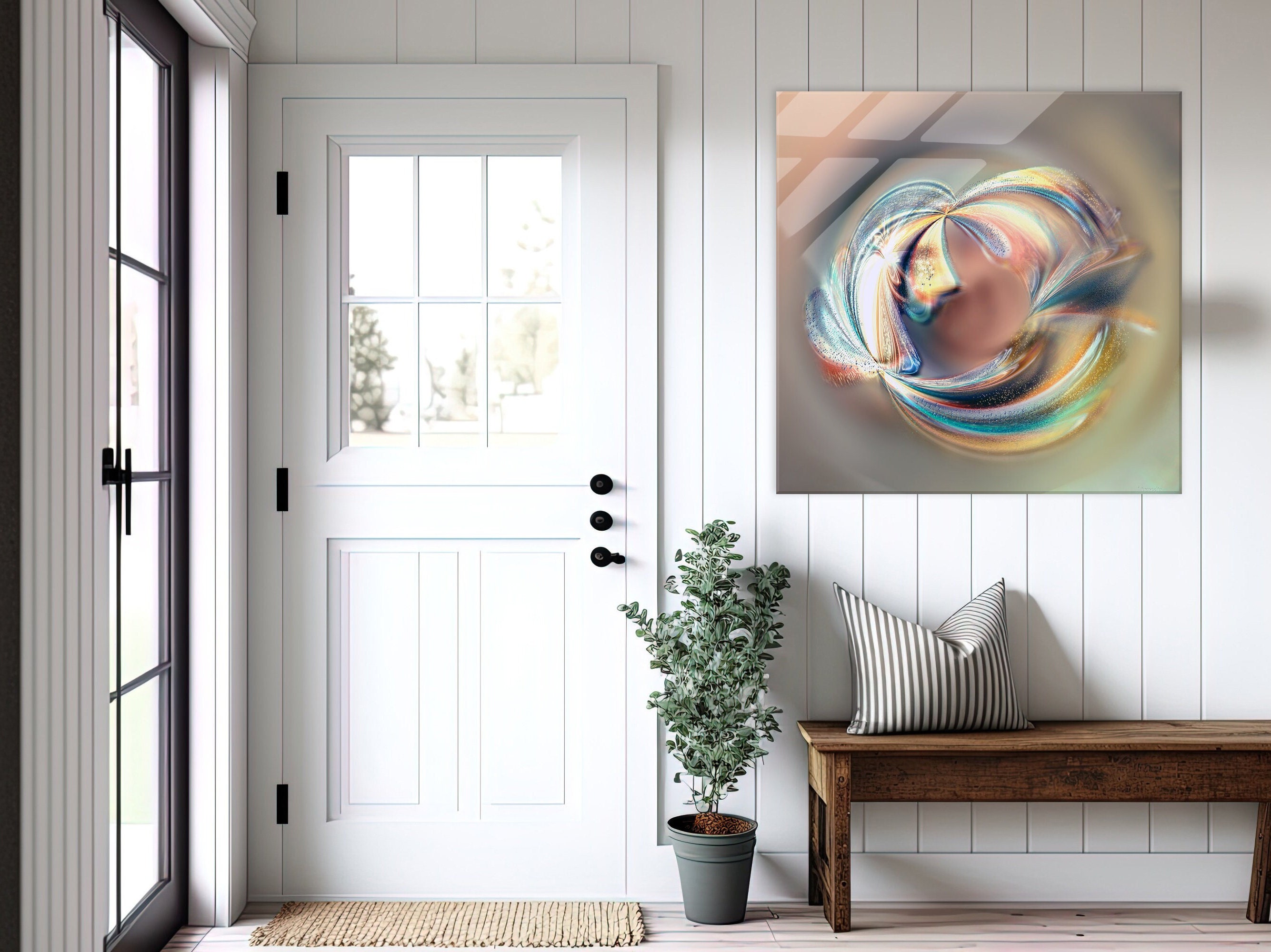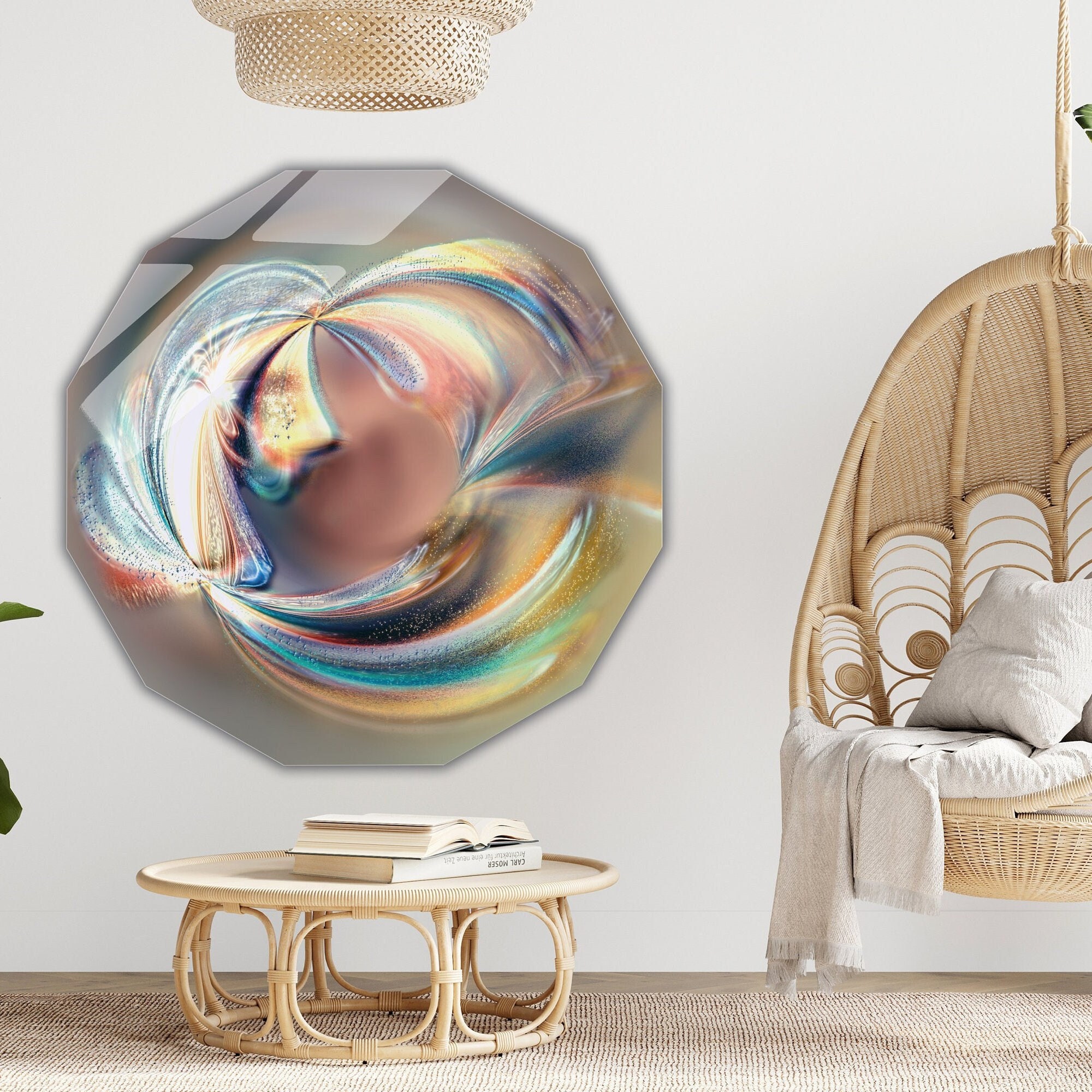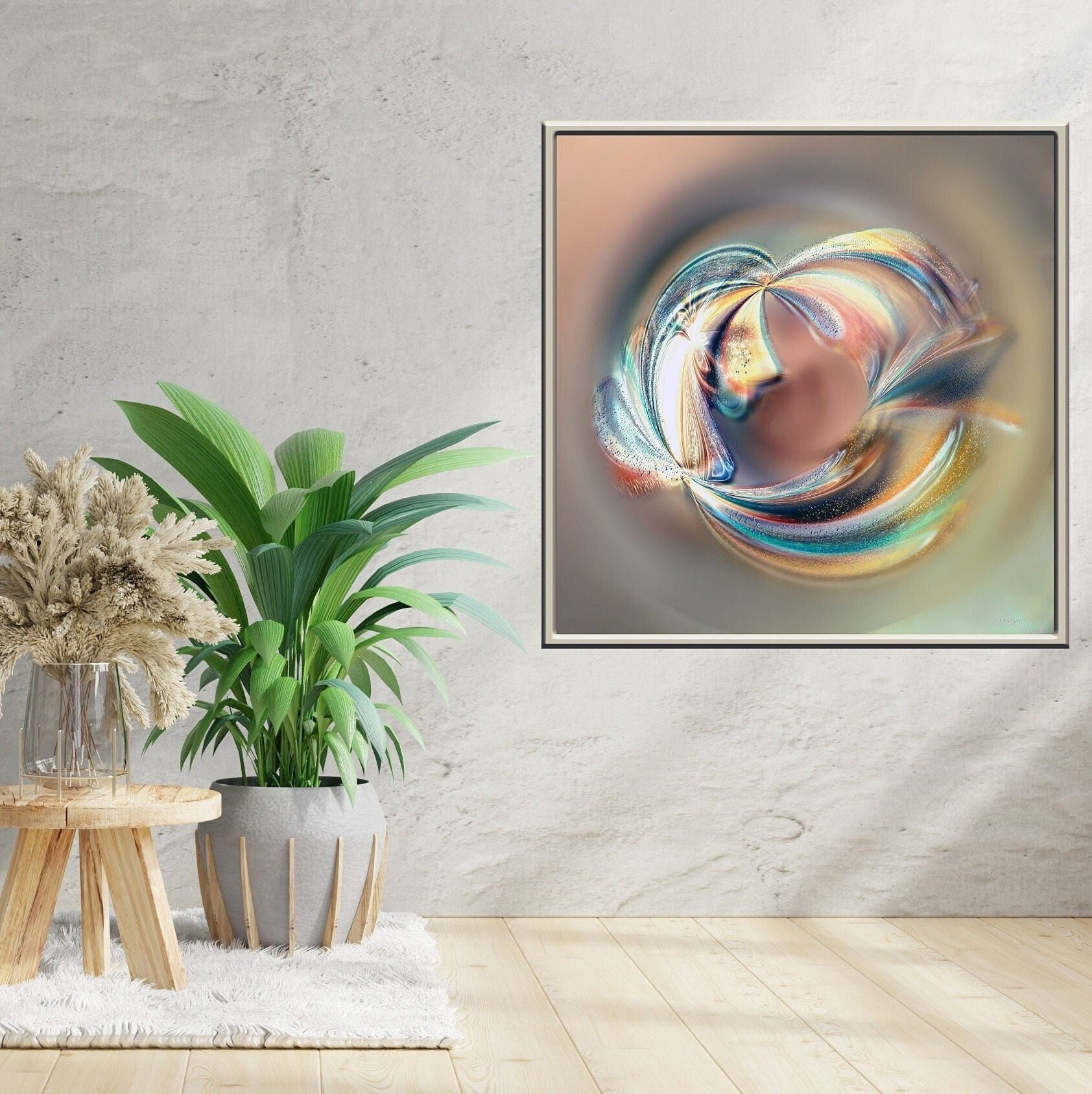Immerse yourself in the luminous, abstract world of "Vortex of Crystalline Light," a captivating artwork that blends movement and light in perfect harmony. This abstract painting, printed on plexiglass or brushed aluminum, captures the fluidity of colors and reflections with striking precision. Swirling curves create a dance of crystalline light, offering a mesmerizing visual experience from every angle.