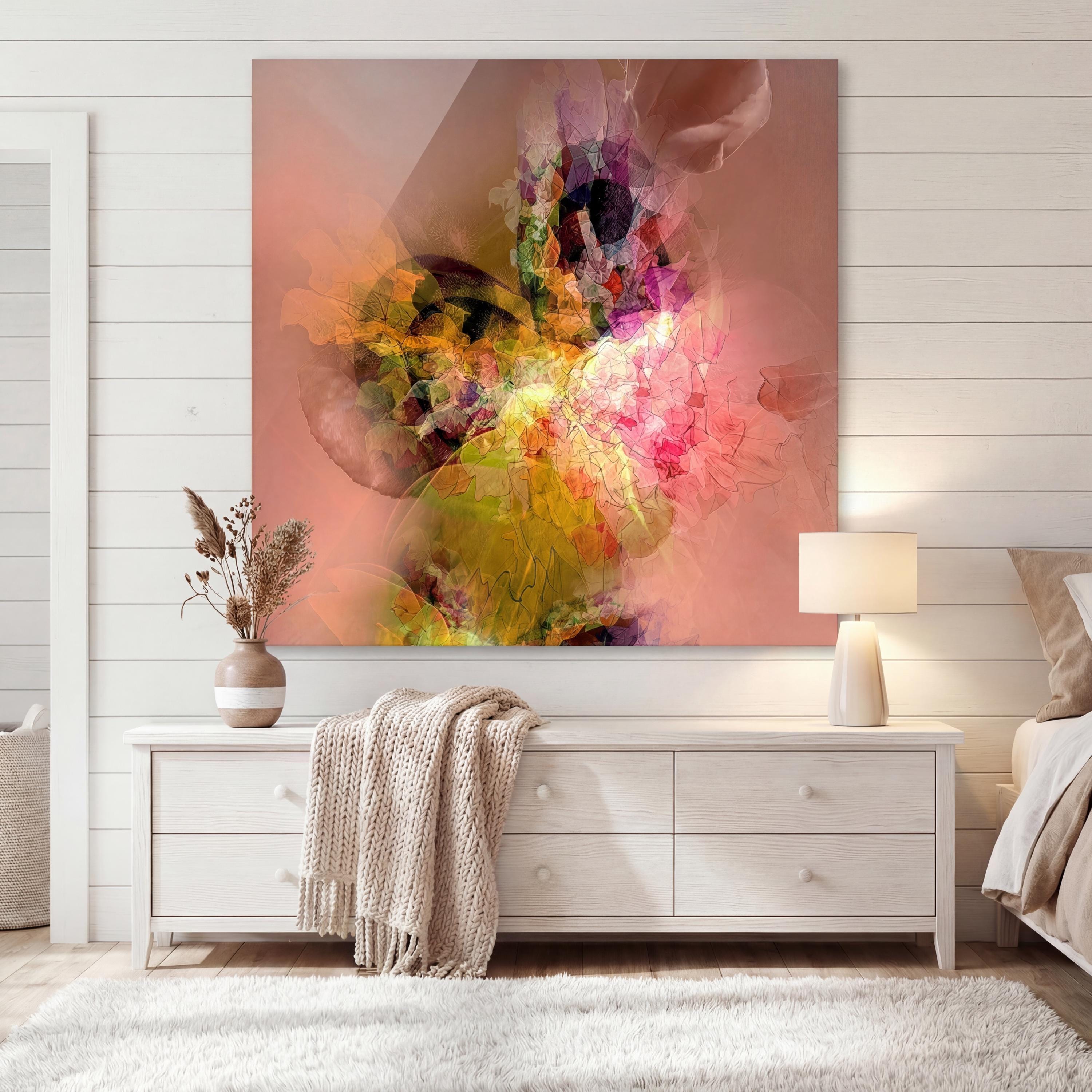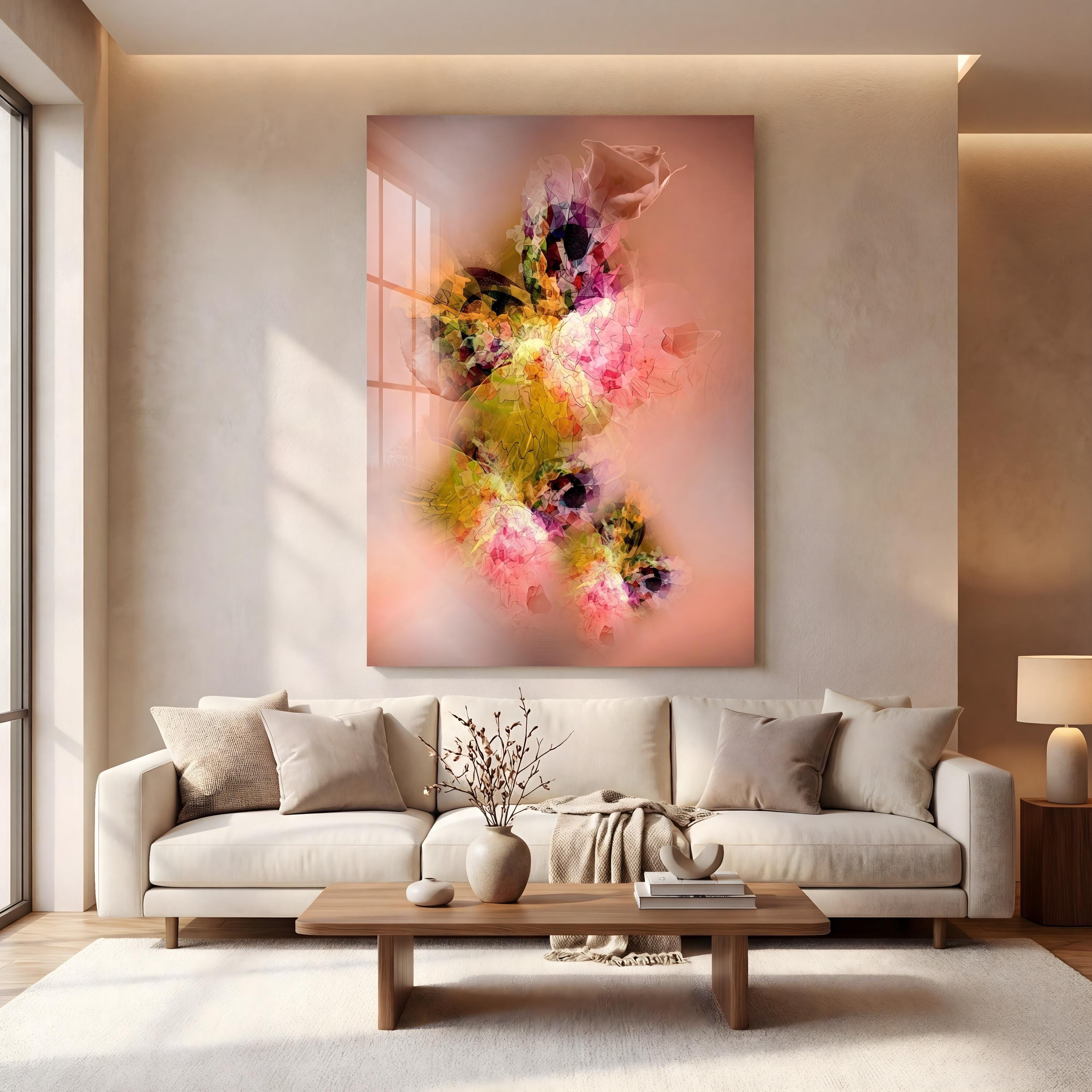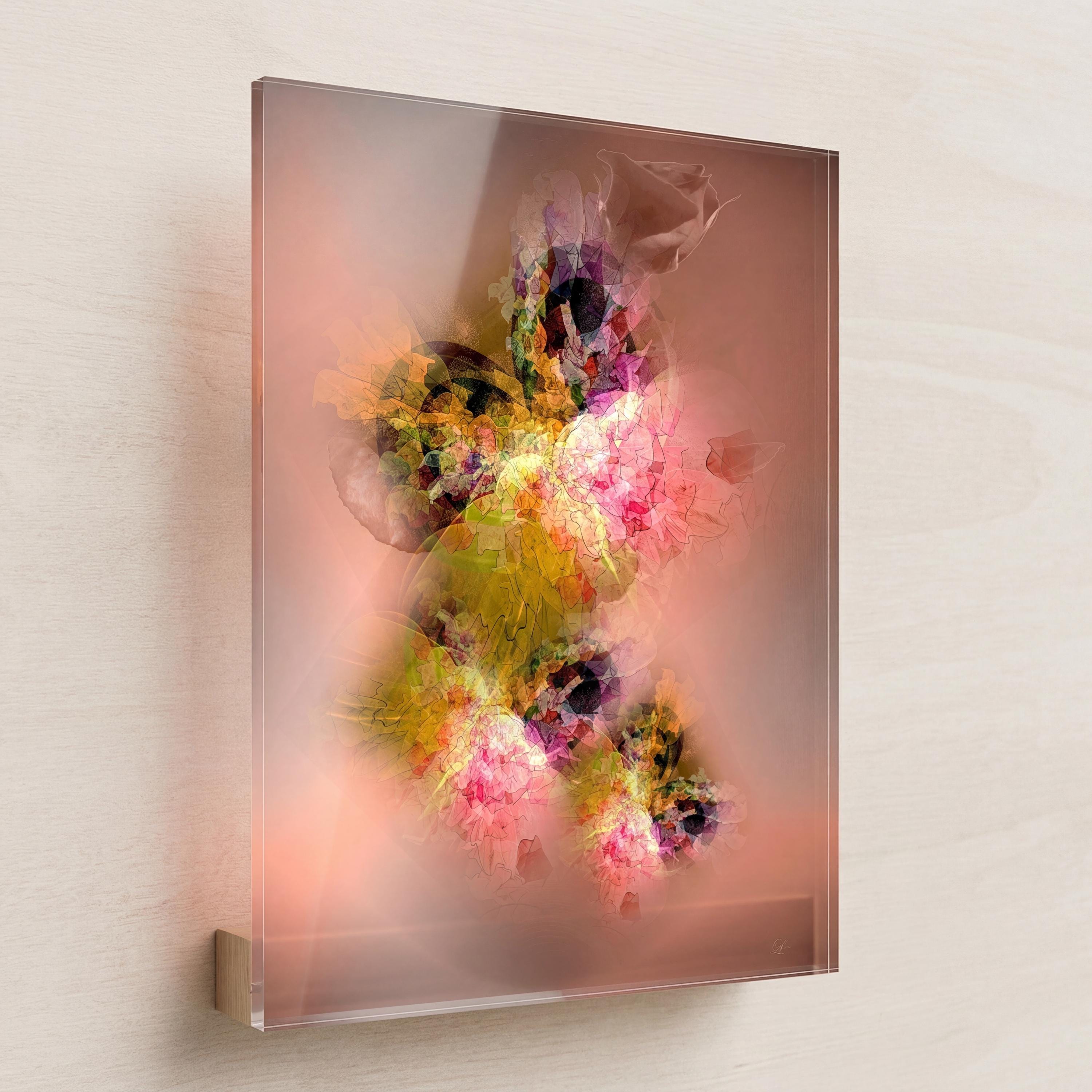 Une composition florale abstraite aux nuances vibrantes, sublimée par le plexiglas qui révèle toute la profondeur et la lumière de l’œuvre.