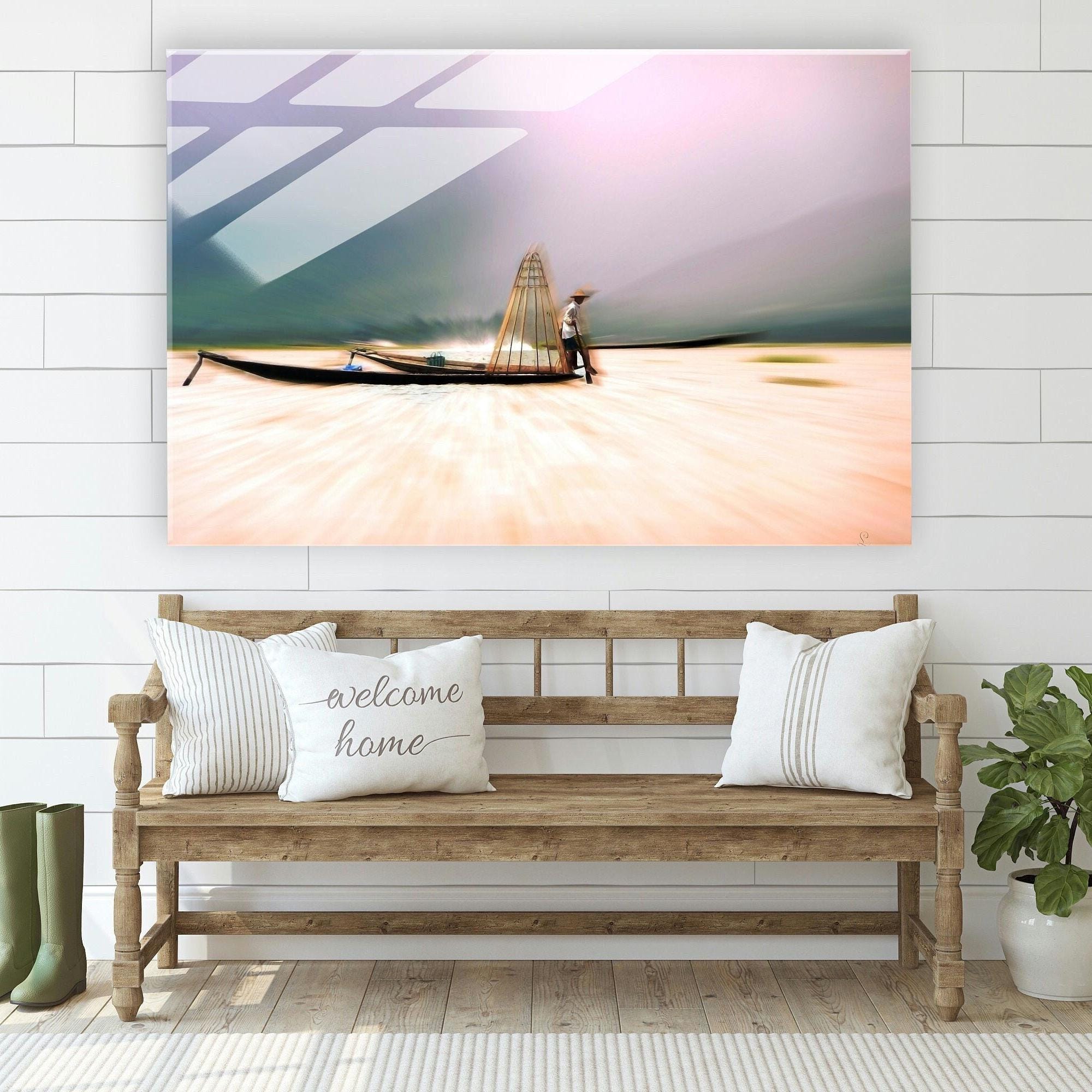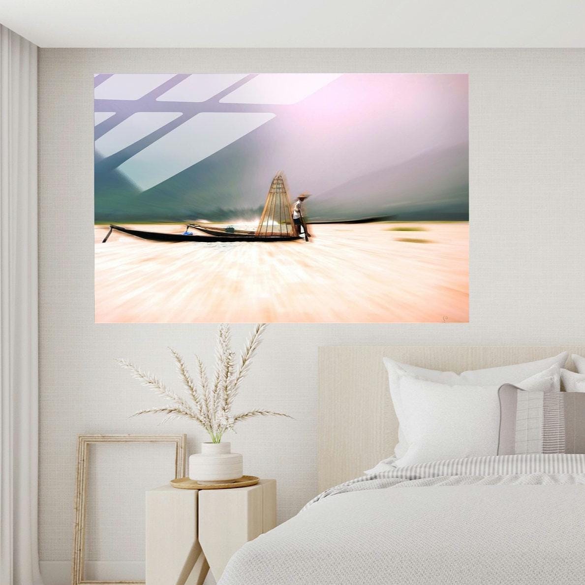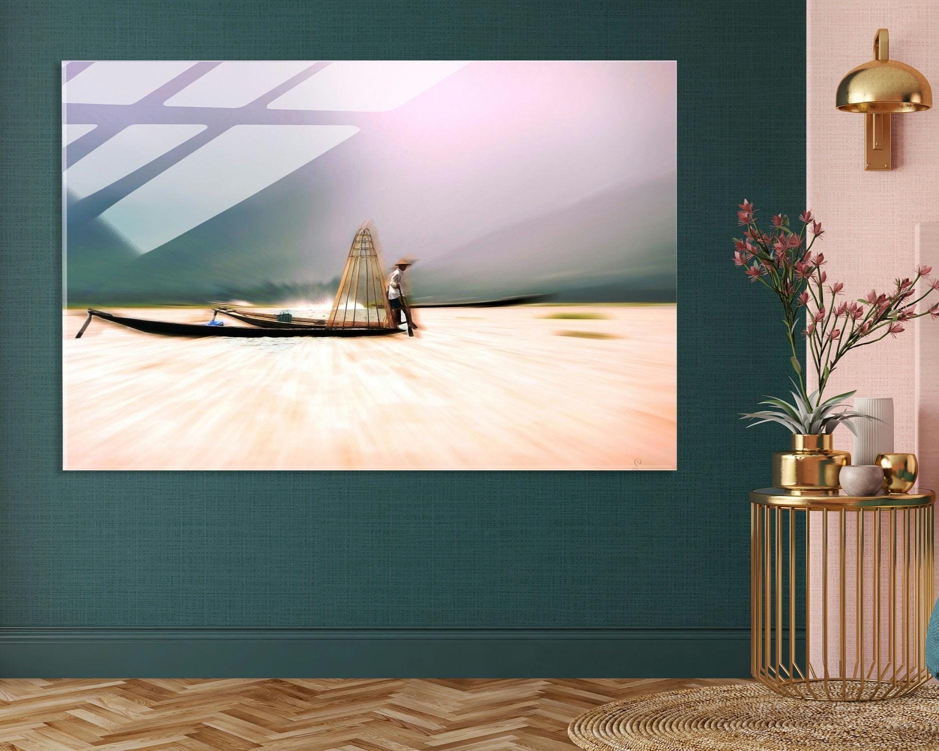Pêcheur Birman est une œuvre contemporaine inspirée par la sérénité des paysages asiatiques et la poésie du geste traditionnel.