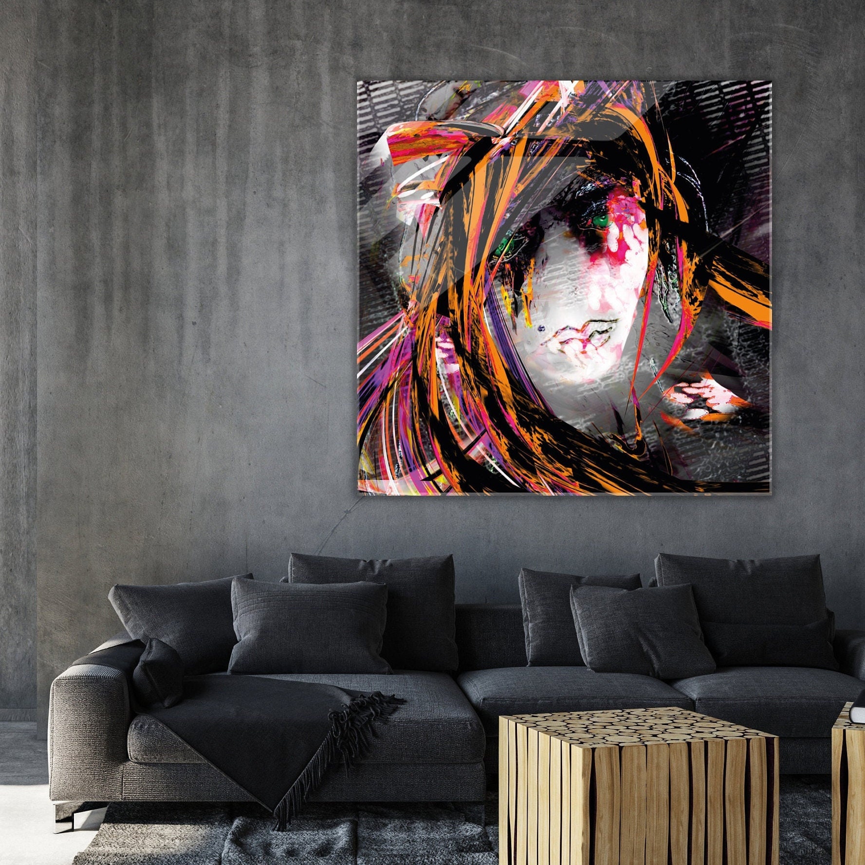 Abstract photo print, The Exquisite Corpse grey and orange | Plexiglas/Aluminium | Polygonal/Square/Round | Wall art.