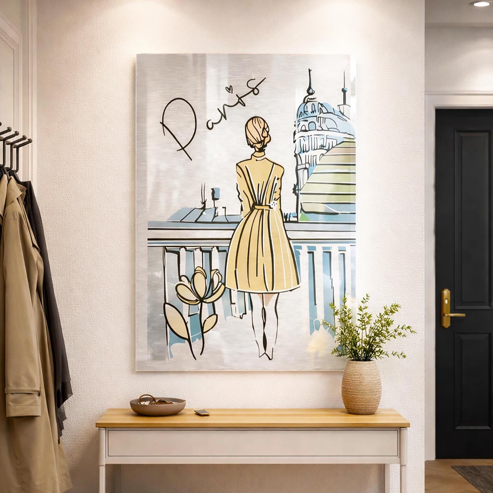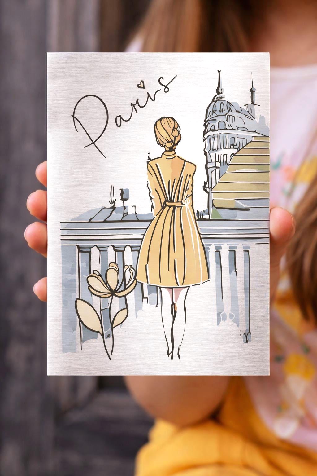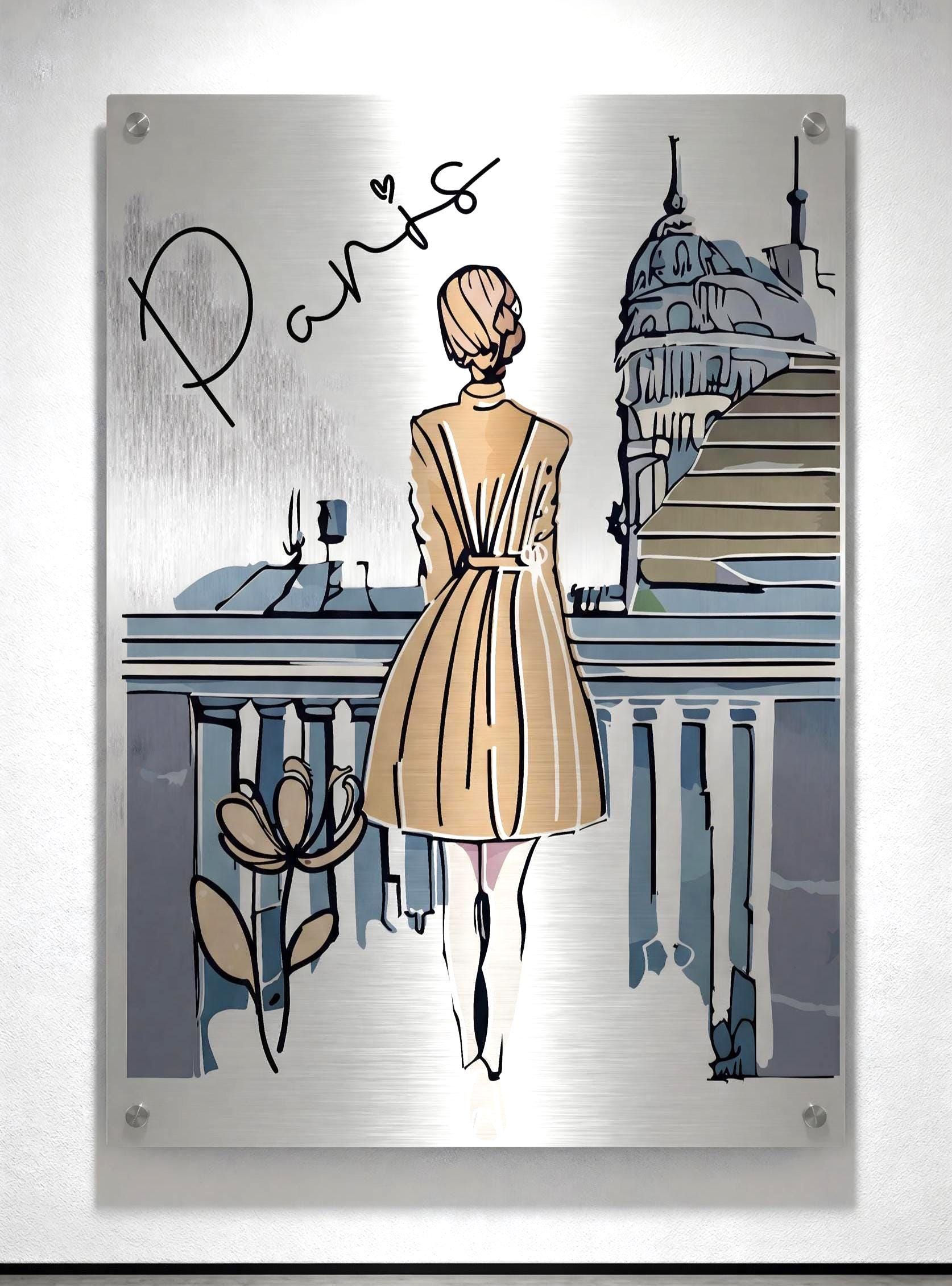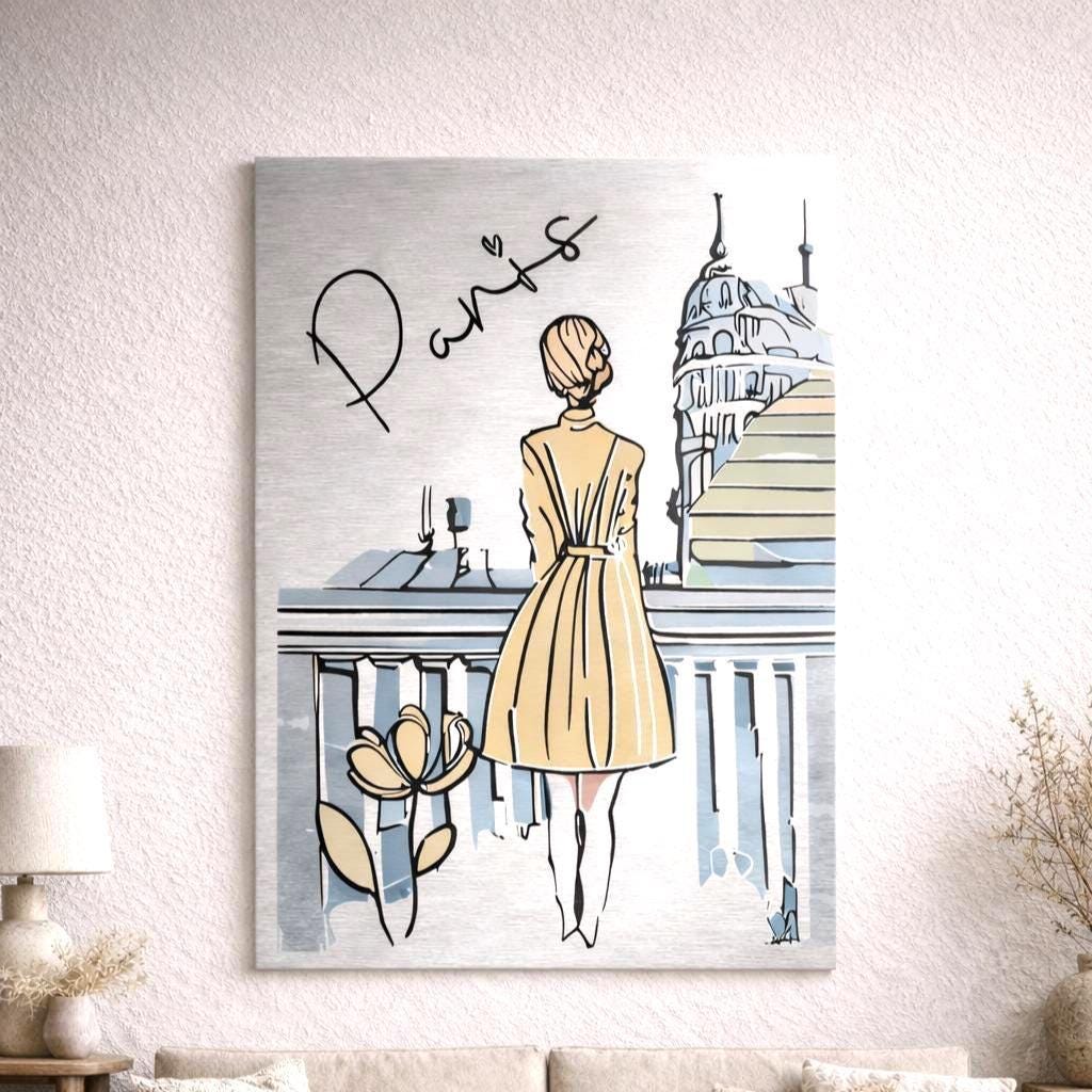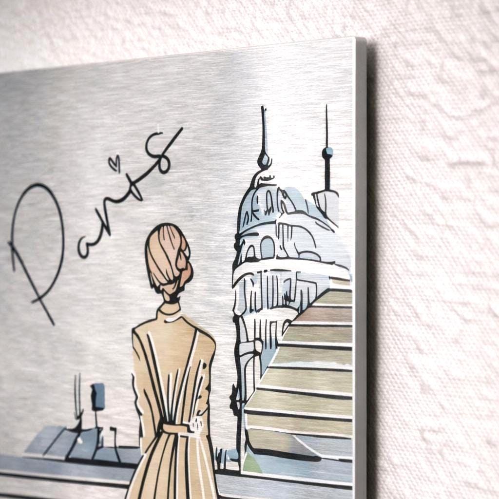 Cette œuvre murale contemporaine imprimée sur aluminium brossé met en scène une composition élégante inspirée de Paris, pensée pour une présentation galerie moderne et raffinée.
