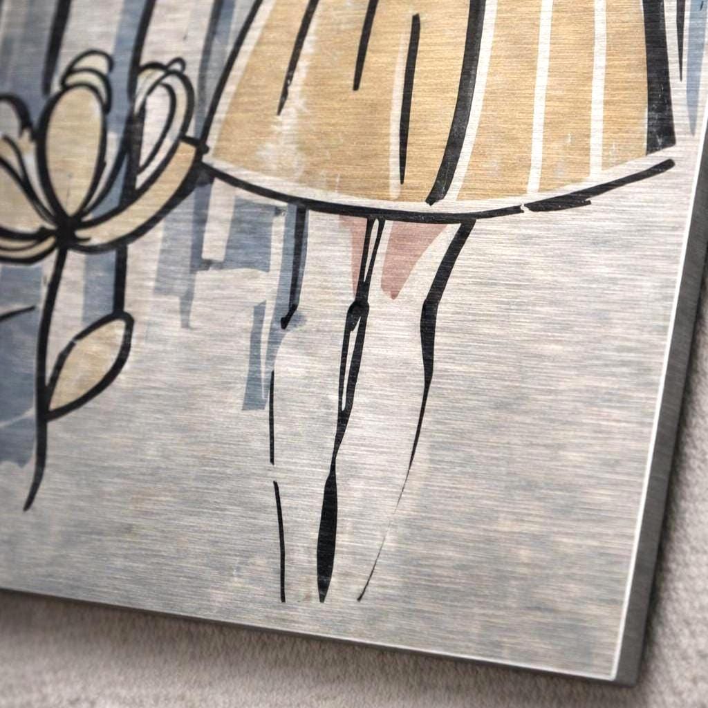 Proposée exclusivement sur aluminium brossé premium, cette œuvre offre un rendu mat haut de gamme, sans effet plastique, idéal pour une atmosphère galerie.