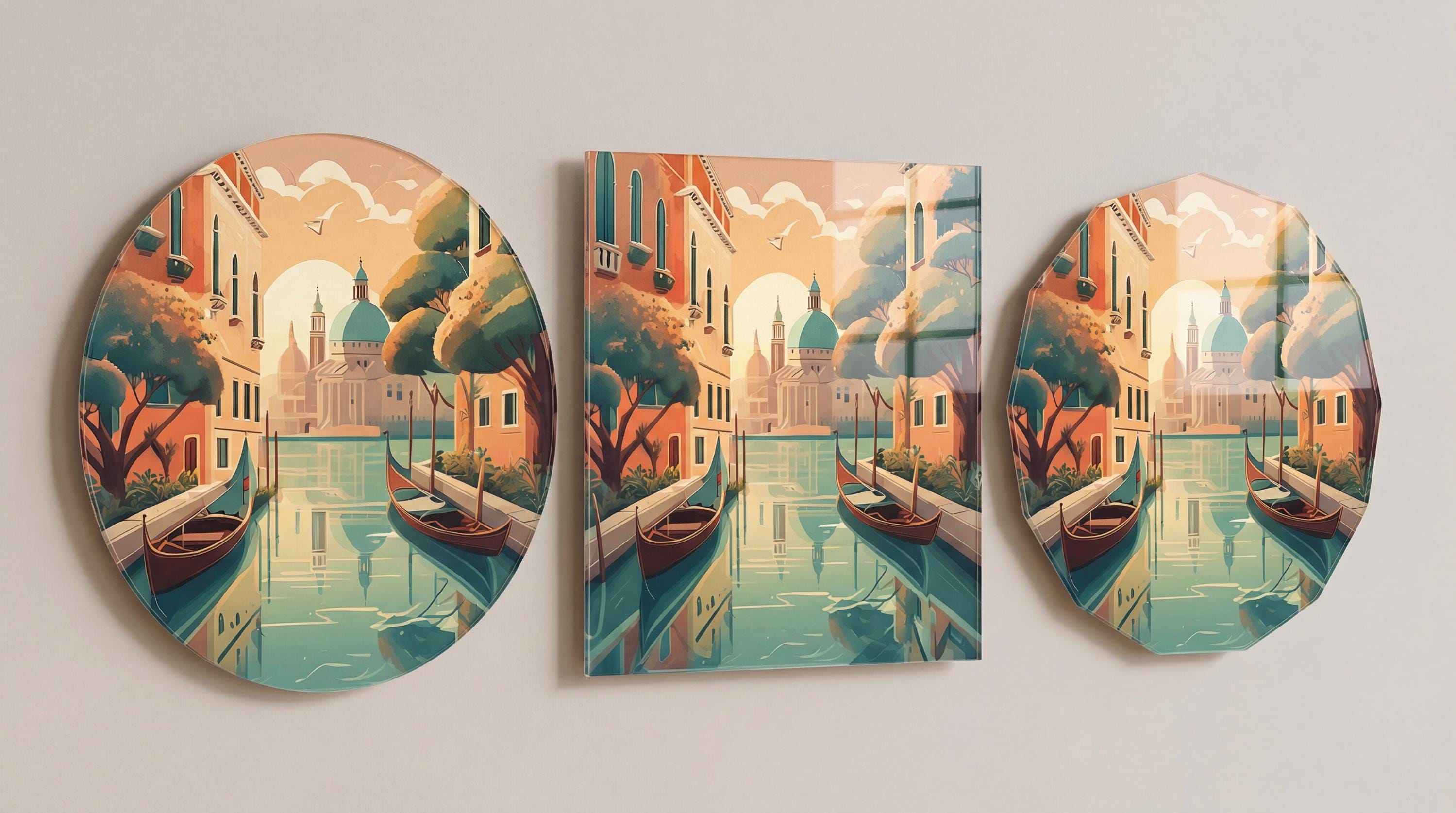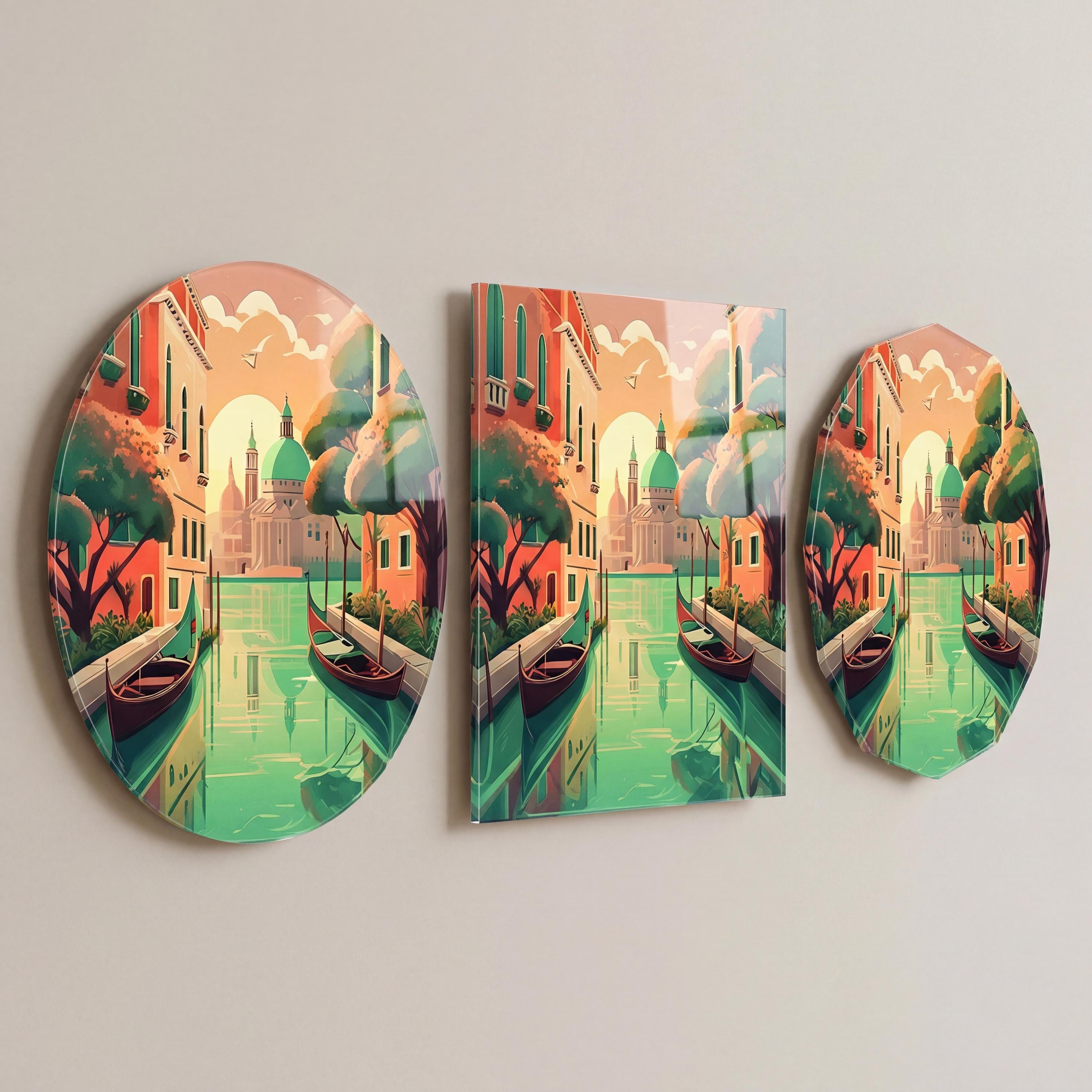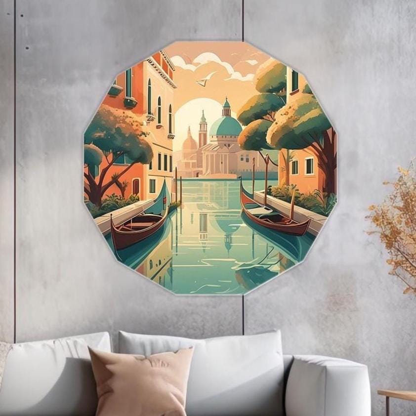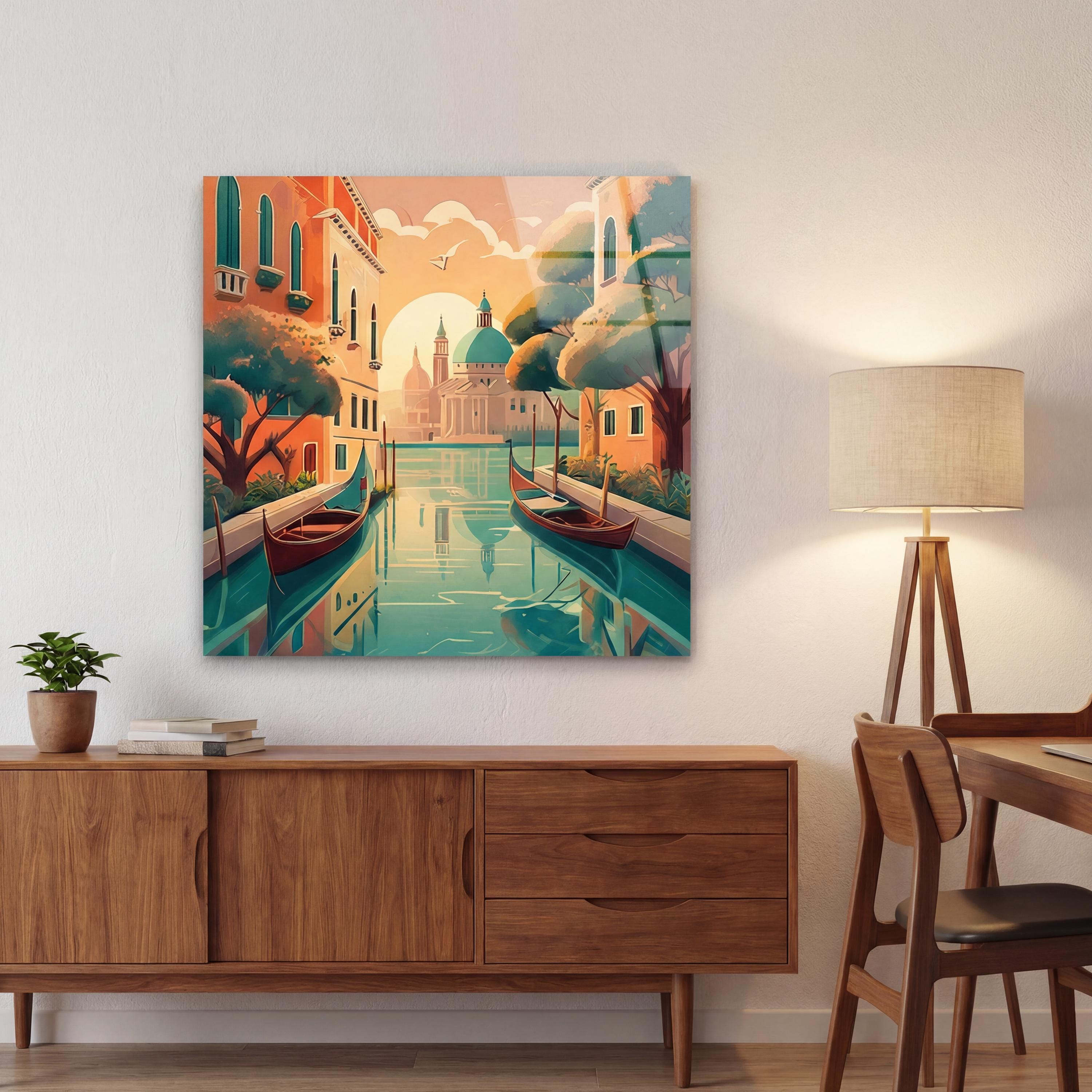 This high-end plexiglass picture of Venice is a contemporary wall decoration piece, inspired by the iconic canals and romantic atmosphere of Venezia.