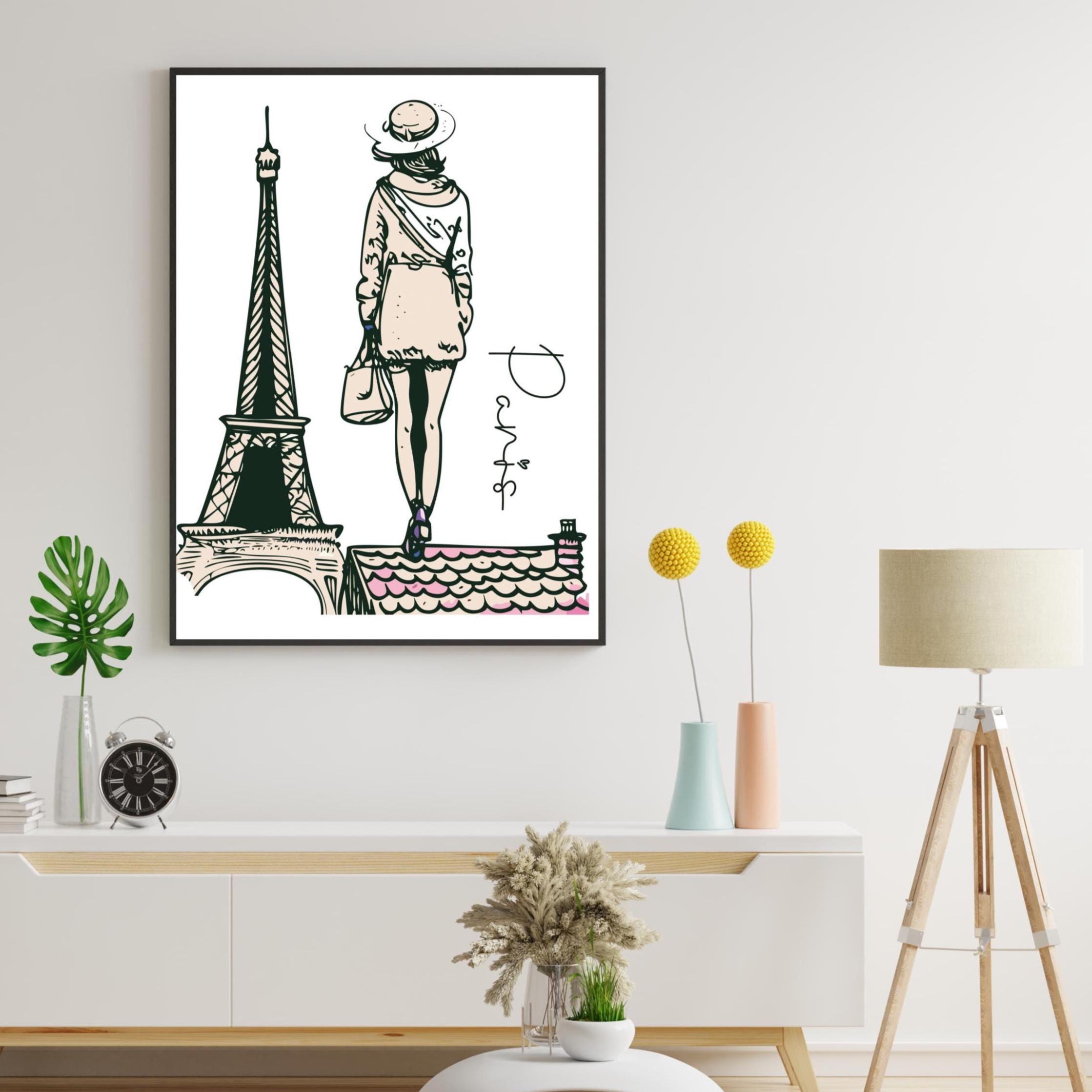 Bring the timeless elegance of Paris into your home with this exclusive Art Deco illustration. Inspired by 1930s Paris, this refined feminine scene is designed to enhance a living room, bedroom, or office.