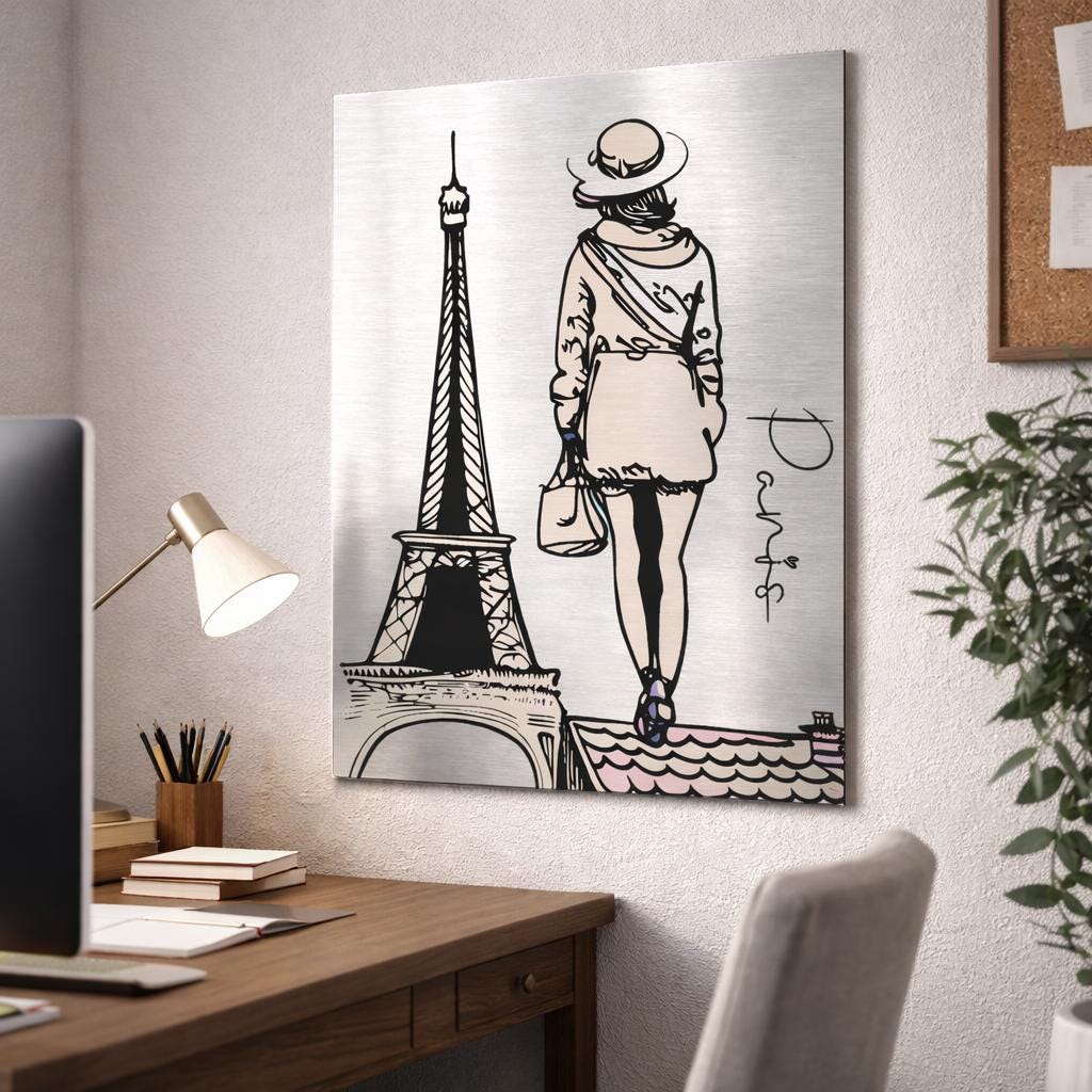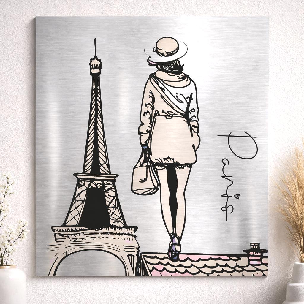 This contemporary Paris brushed aluminium print is printed on premium material, offering a modern, elegant and luminous finish.