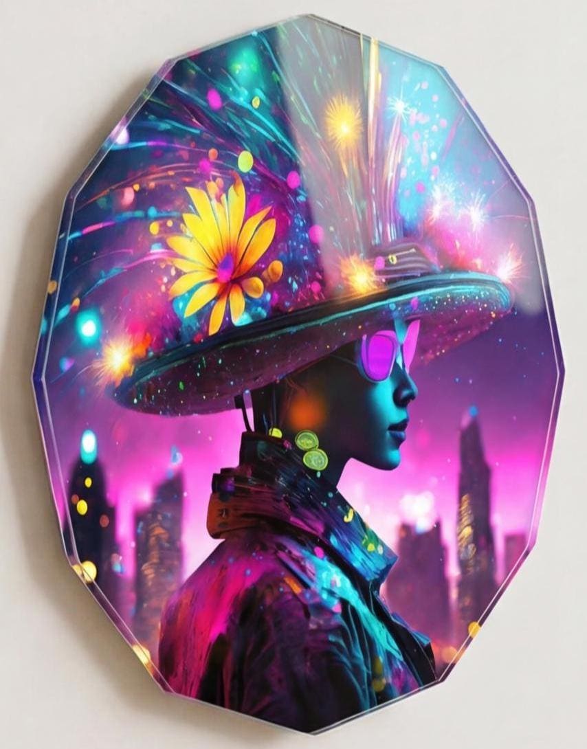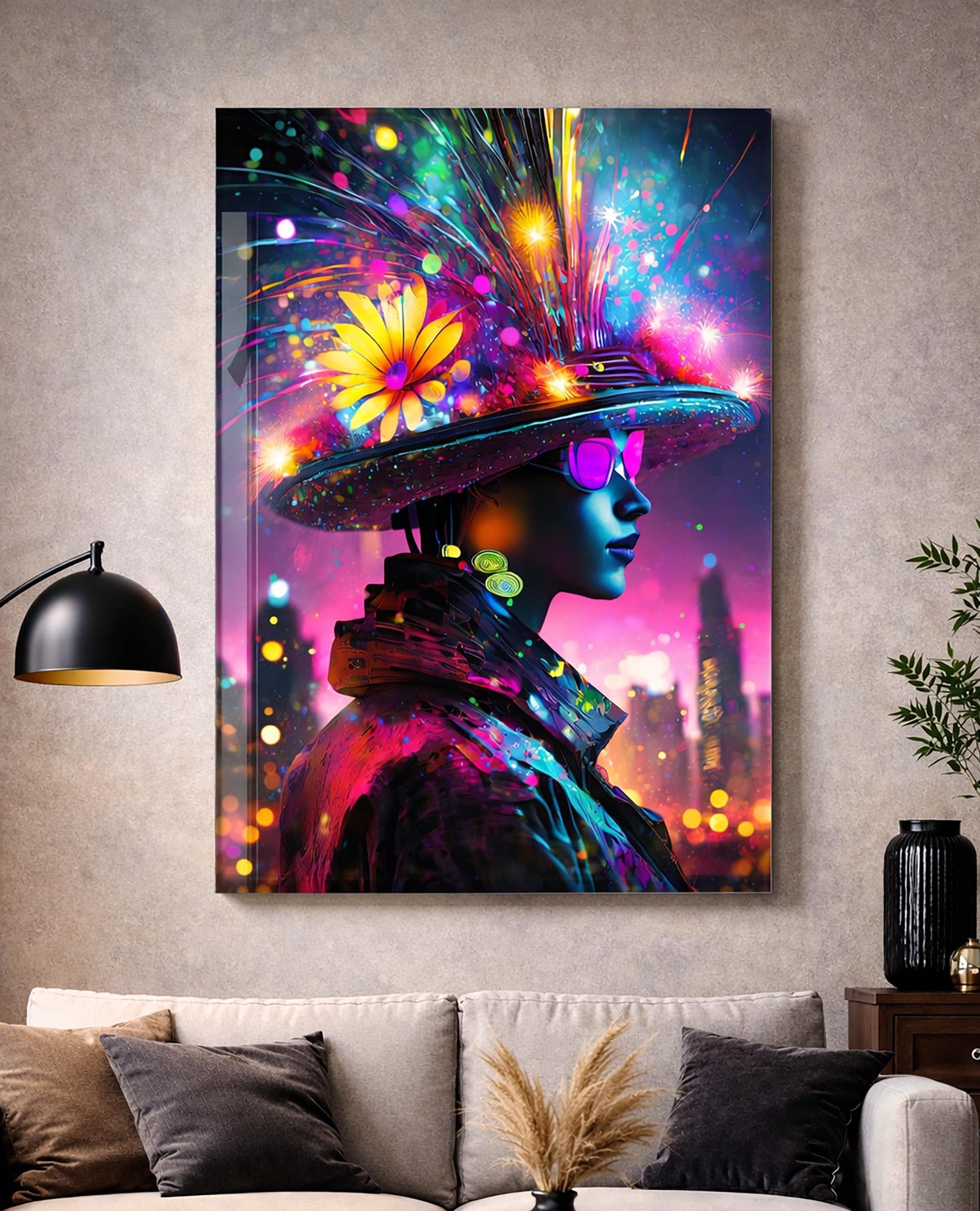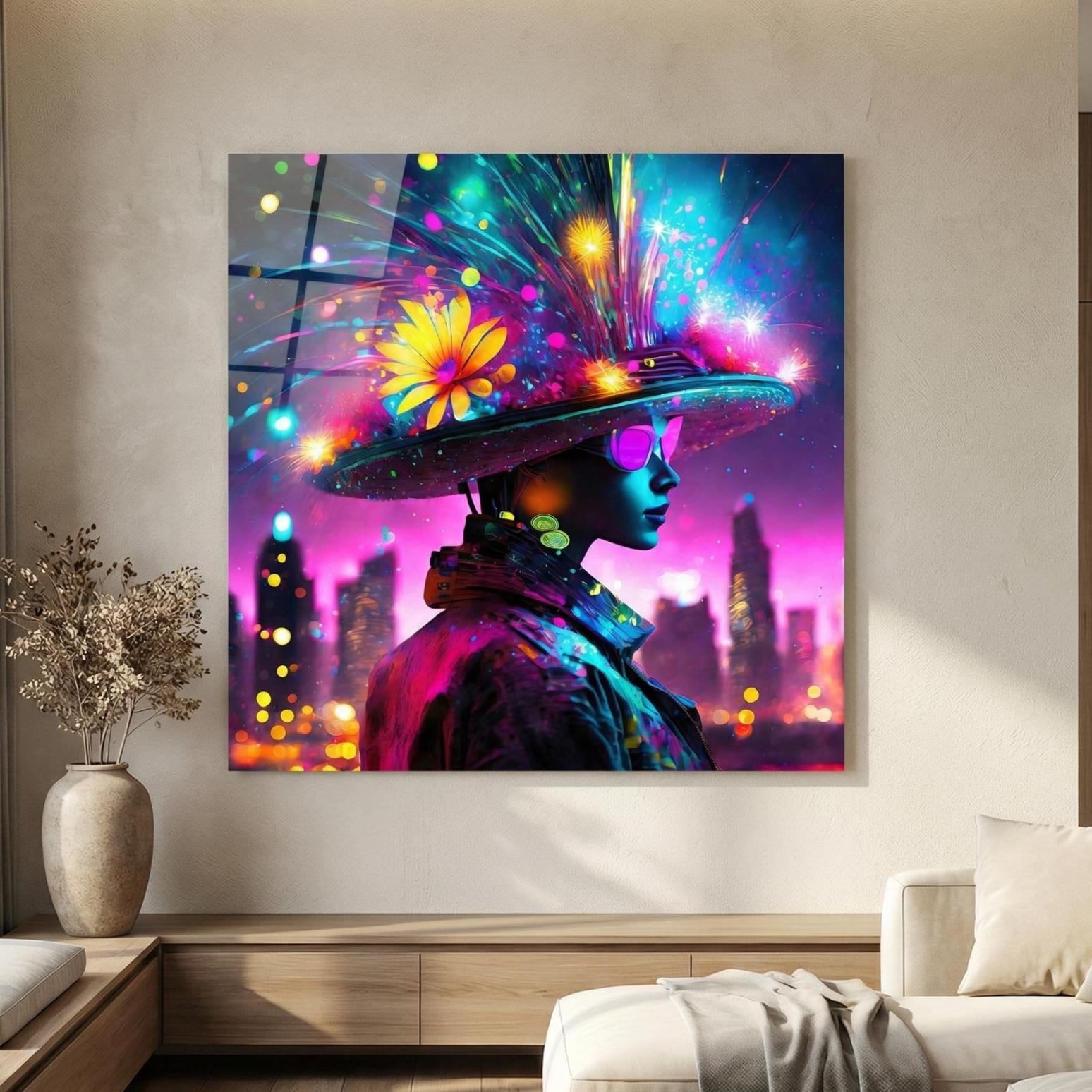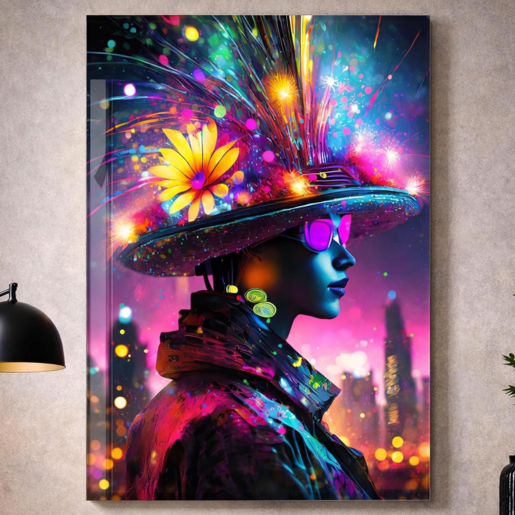 La composition lumineuse et contrastée apporte une présence artistique forte, idéale pour un intérieur moderne, design ou minimaliste.